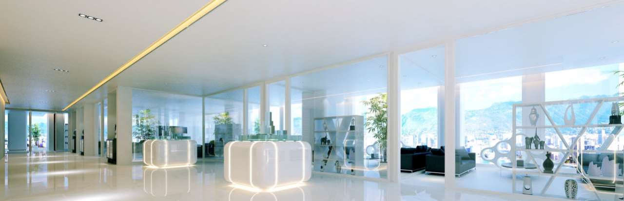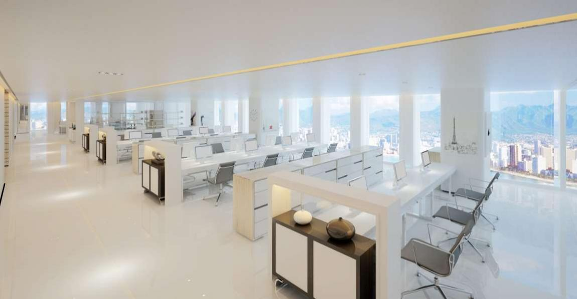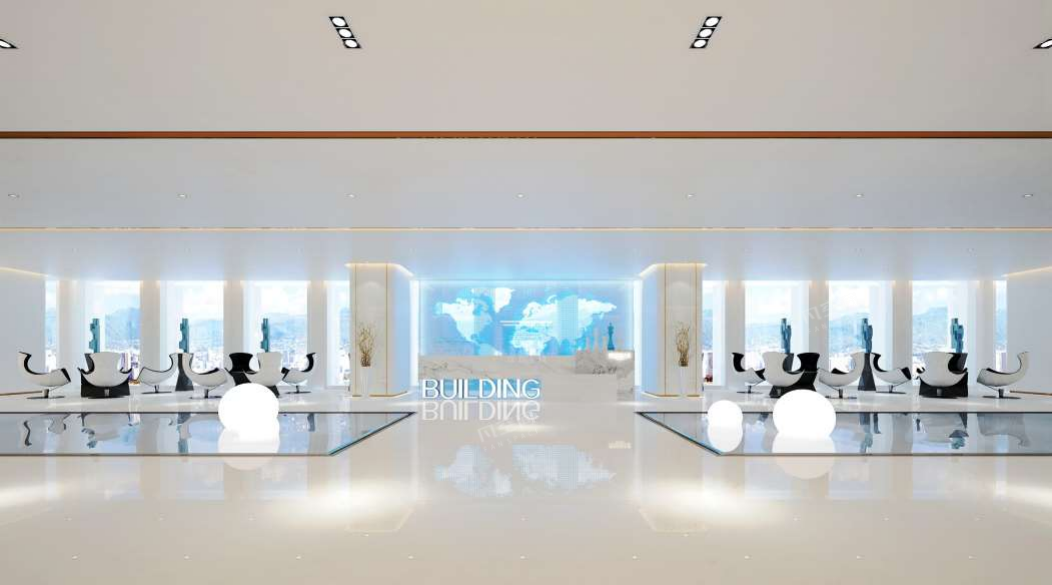 横琴总部大厦设计以 “极简、通透、科技感” 为核心,打造未来办公空间。公共区域采用纯粹白色调,搭配利落线条与几何造型,营造开阔明亮氛围。接待区巨型世界地图背景墙,彰显国际视野;悬浮式接待台、艺术感座椅,传递创新气质。