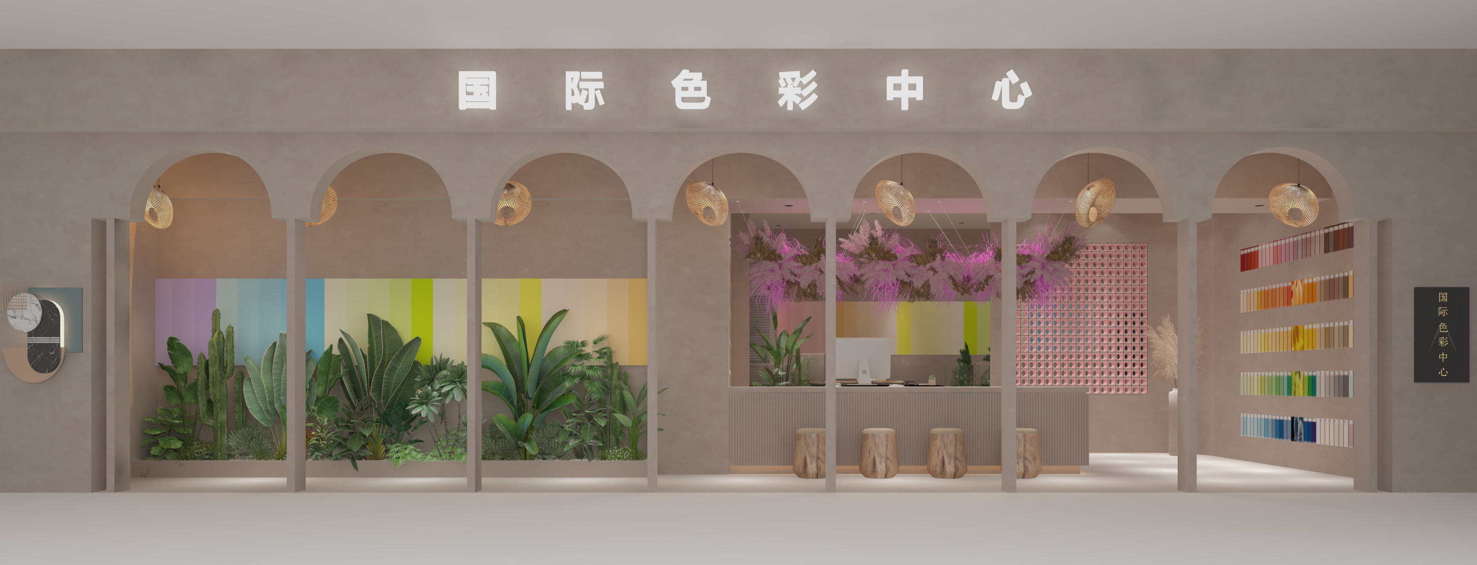 展示区中,艺术涂料以渐变墙、立体模块等形式呈现,搭配绿植造景与艺术陈设,让色彩成为空间主角,讲述从自然汲取灵感的涂染故事;休闲洽谈区,围合式布局与暖光设计,营造沉浸式交流场景,使参观者在自然与色彩的对话中,深度感知艺术涂染的美学价值与工艺温度,打造区别于传统展厅的诗意体验场域 。