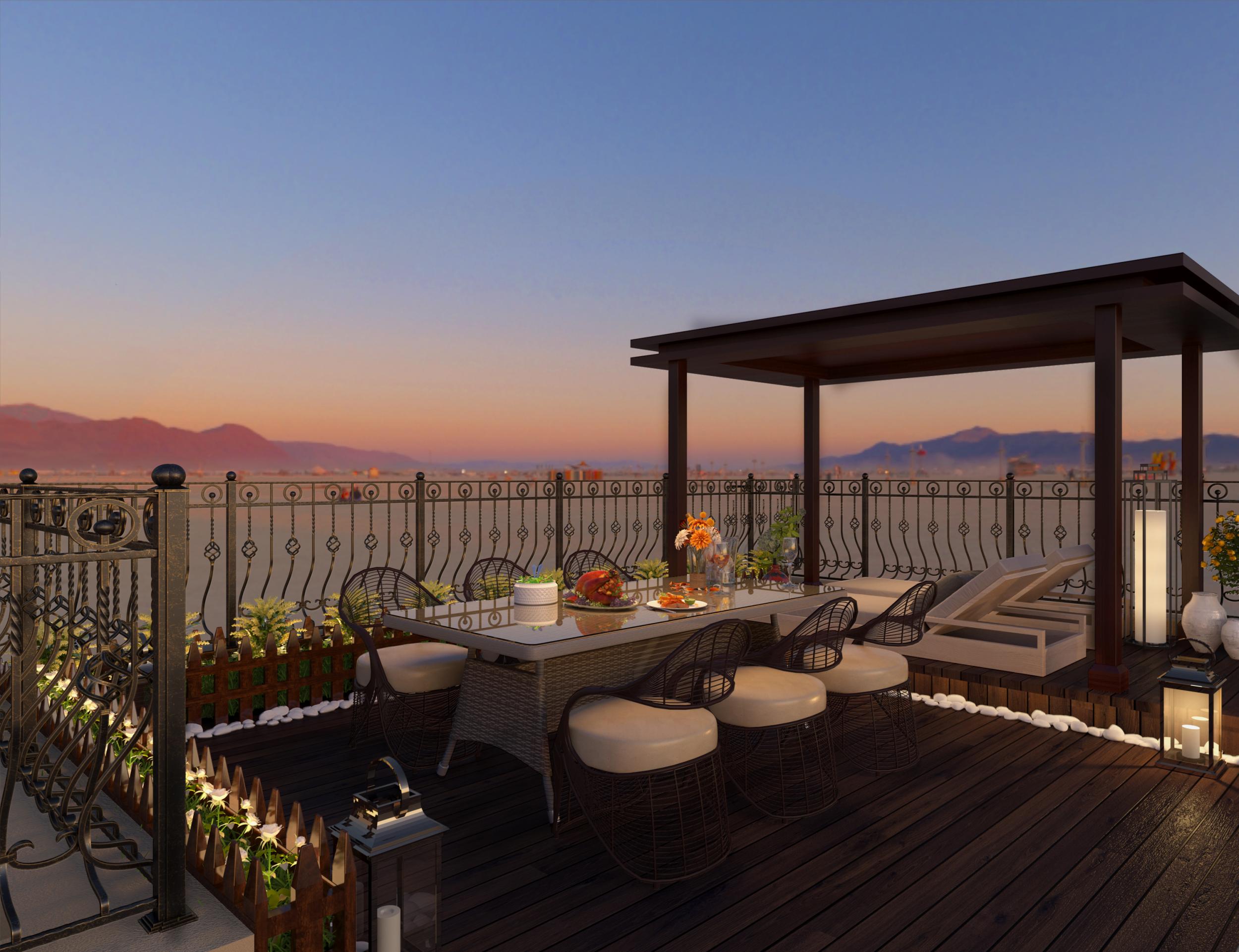露台作为美式生活的延伸,木质甲板搭配藤编家具,营造休闲度假感。遮阳棚下的餐桌区,适配家庭户外聚餐;躺椅区可远眺山海,将美式的 “自然融入生活” 理念,与珠海的滨海风光深度结合,打造 “第二会客厅” 般的户外空间。
