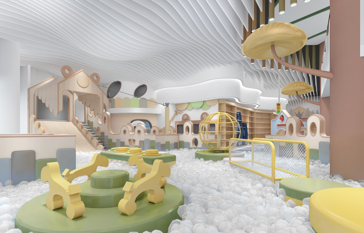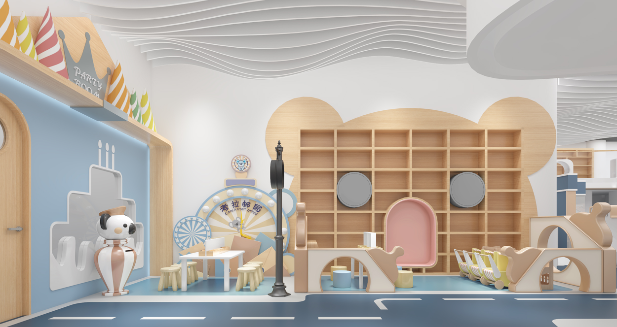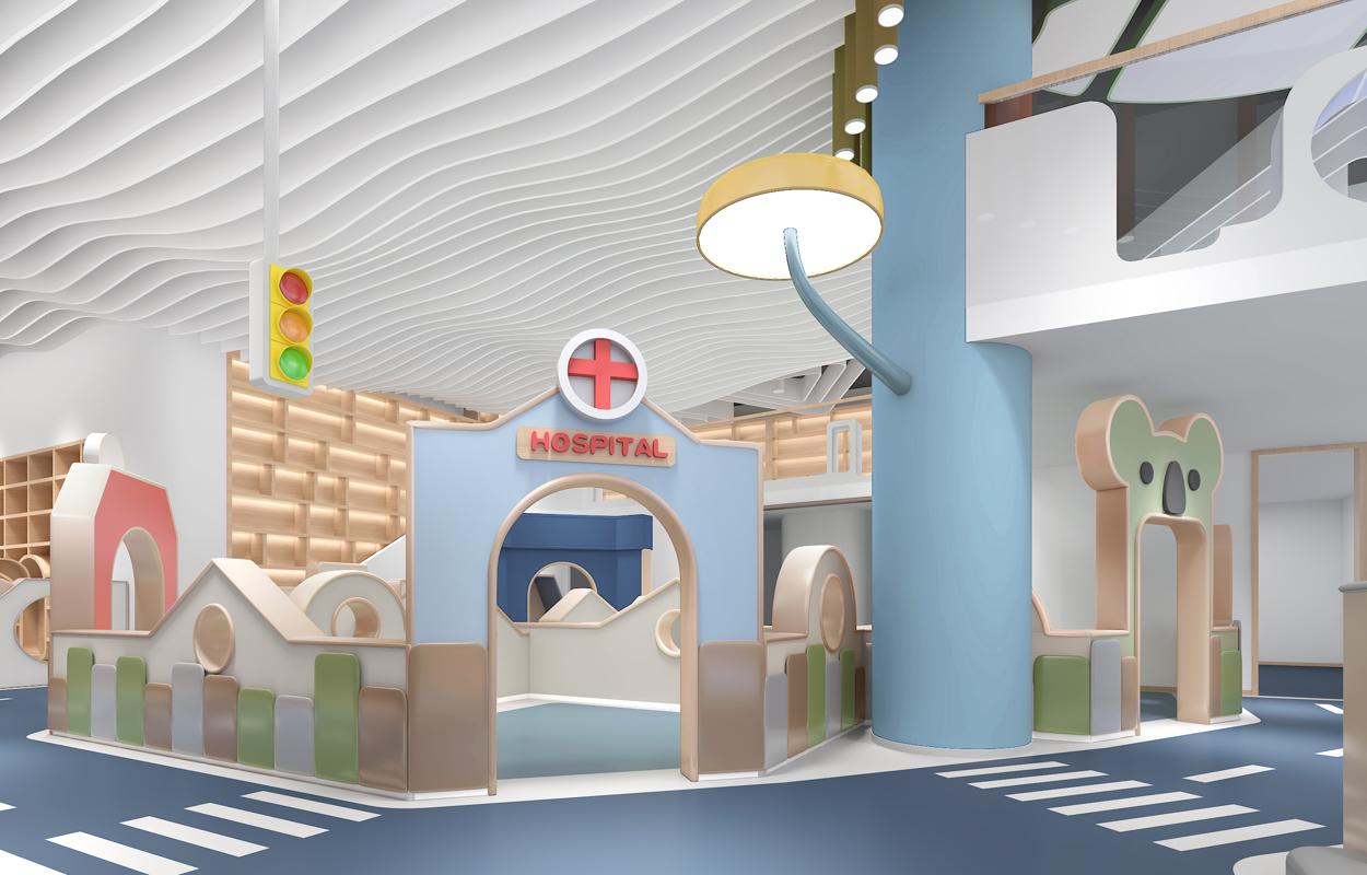 围绕 “儿童友好,趣味探索” 定位,将儿童心理与成长需求融入空间设计。通过构建仿真小镇场景(如医院、邮局等 )、趣味游乐区、主题派对区,激发儿童探索欲,打造家长放心、孩子开心的沉浸式亲子互动空间,传递快乐成长理念。