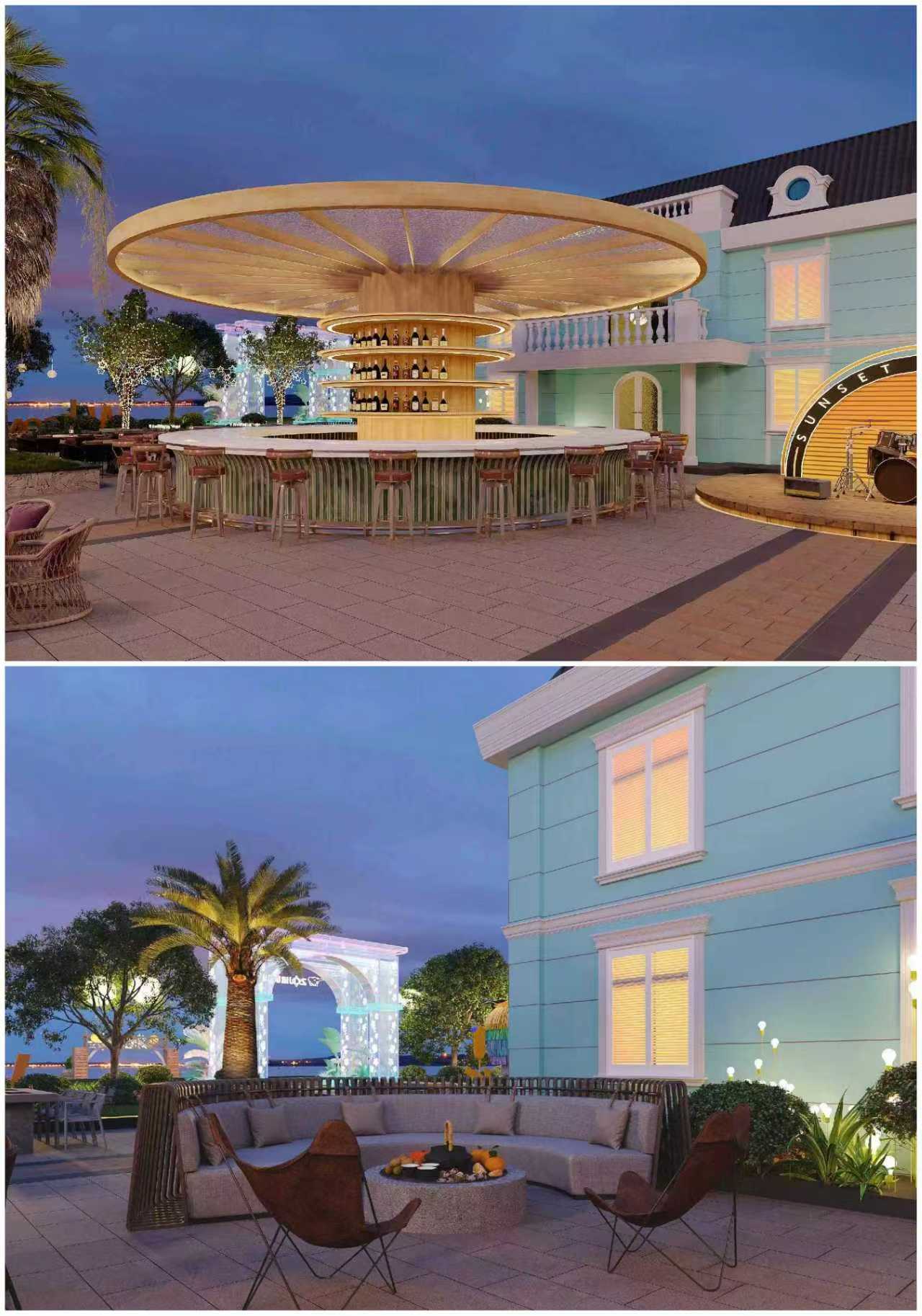 项目风格:现代法式融合风 —— 以法式建筑的优雅轮廓为基底,融合现代设计的时尚感、自然元素与网红打卡属性,通过曲线造型、暖调灯光、艺术装置,营造 “浪漫休闲 + 沉浸互动” 的复合型驿站体验。