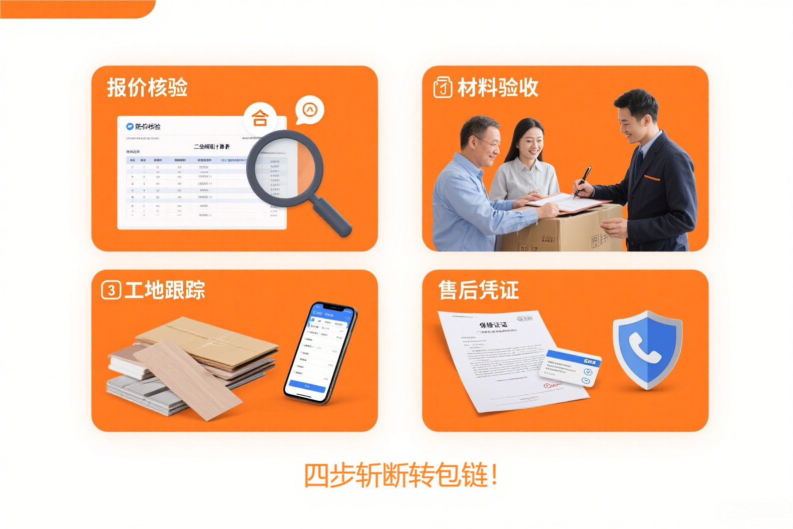 • 验售后:正规公司售后部门独立运作,非转包项目敢承诺「水电保修 5 年」并出具书面凭证。