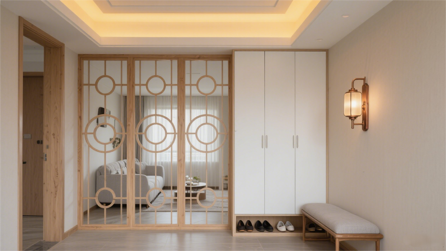 无论哪种材质,隔断都要 “留有余地”—— 全封闭会显闷,半通透才是王道,让玄关与客厅若隐若现,既保隐私又不阻断空间流动。