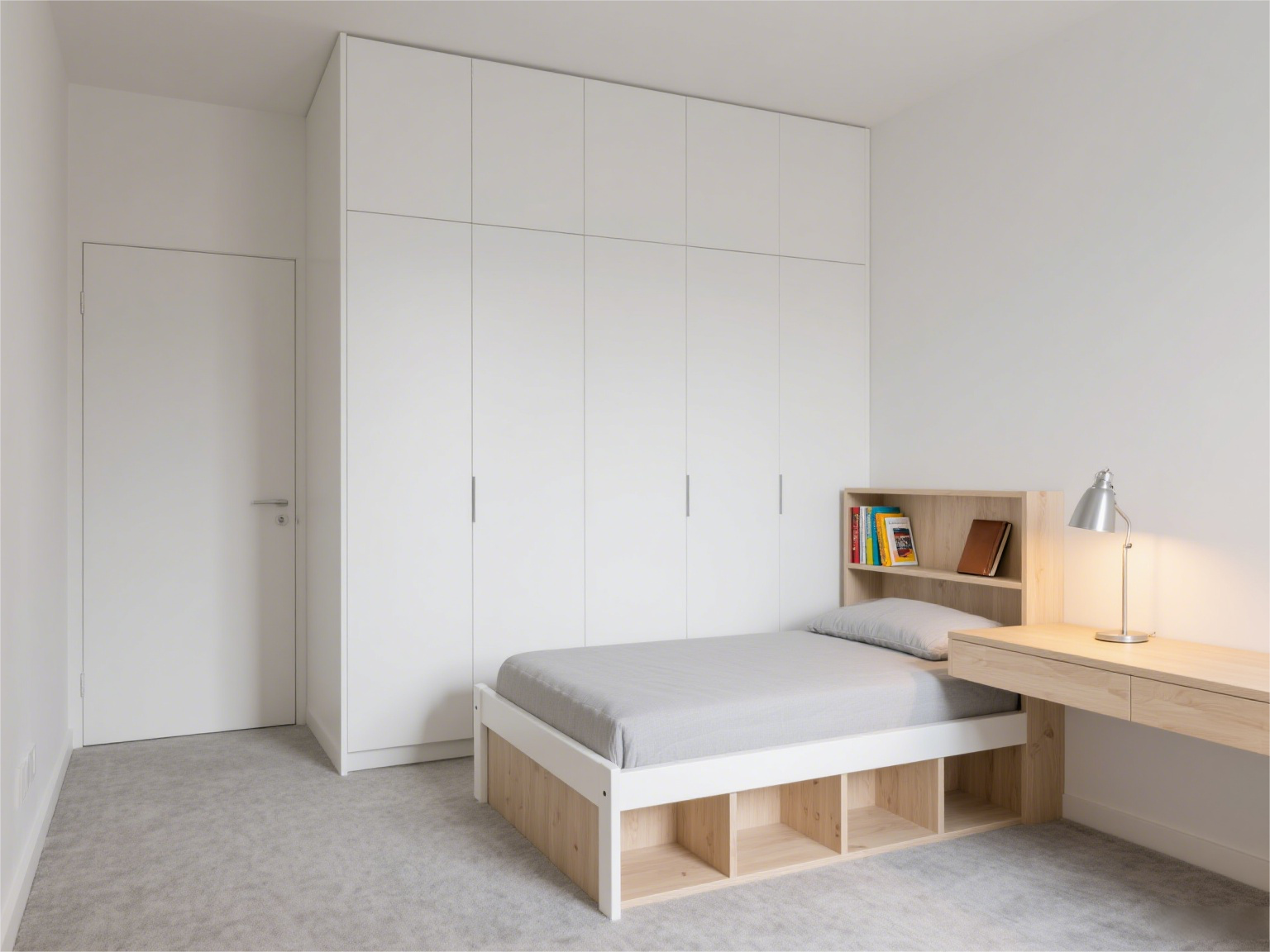 避开门口,守住隐私:别把床正对着门,一进门就看到床,既没隐私,又容易被门口的动静打扰。最好让床靠墙放,留出一侧或两侧过道 —— 方便上下床,也让房间显得通透。