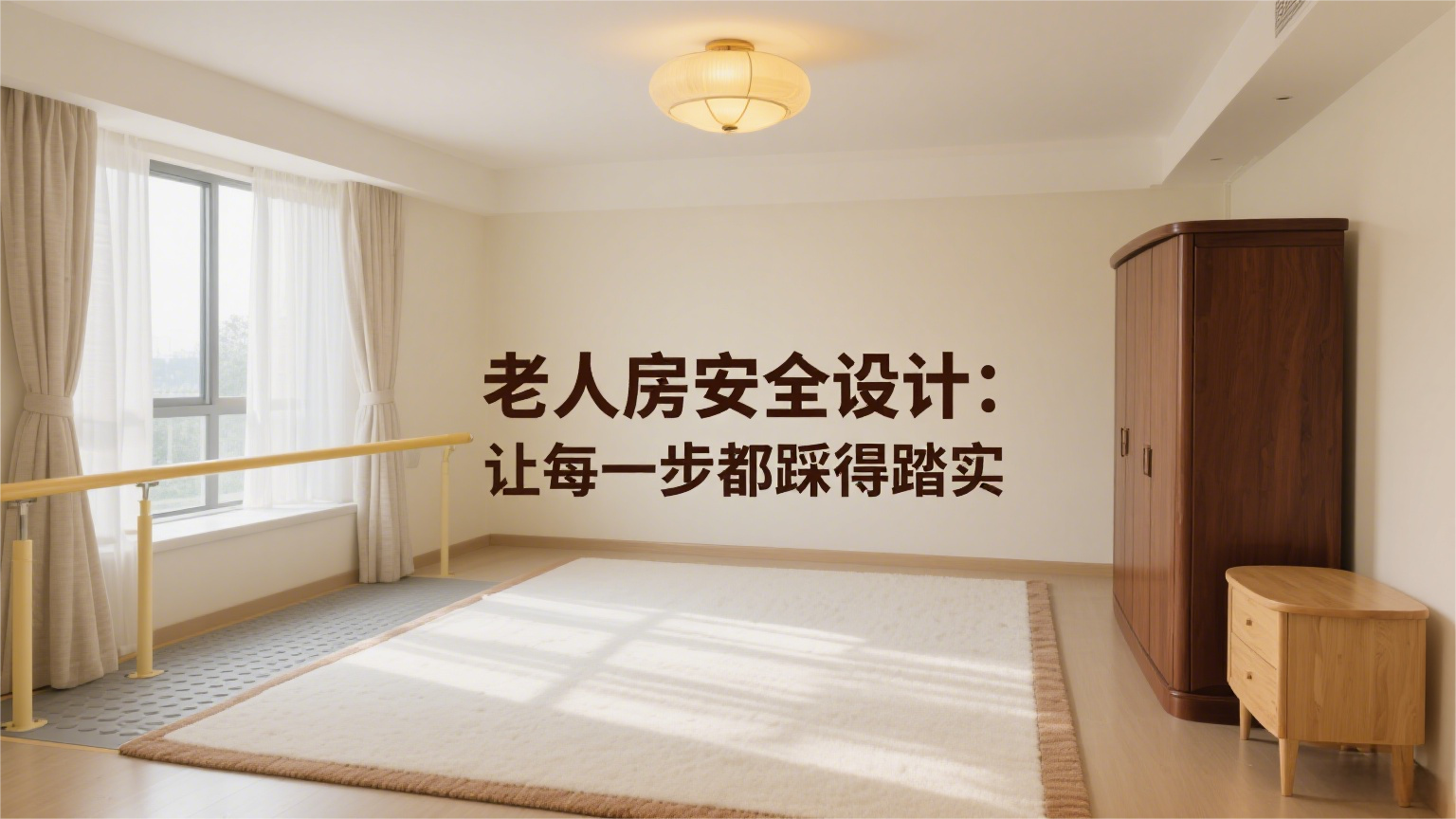 老人房安全设计需兼顾物理与环保安全。物理上,选防滑地毯或实木地板,家具做圆角、留宽通道,避免高差;环保上,用低甲醛板材、水性漆和天然软装。同时设紧急按钮、醒目助力装置,让老人活动无虞,住得安心。