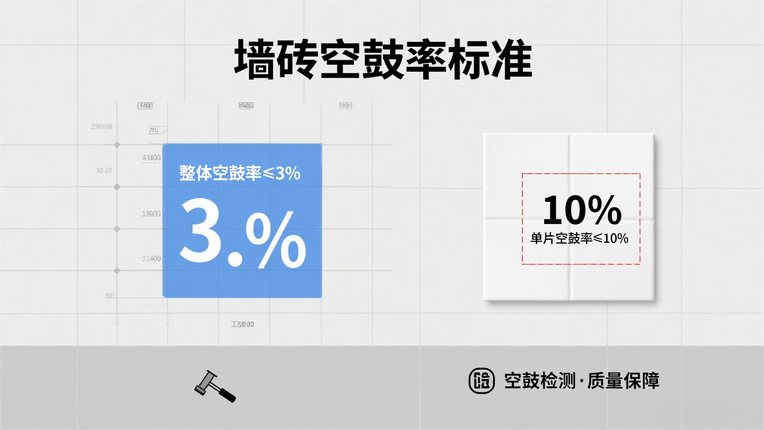 在瓷砖铺贴施工中,空鼓率是衡量粘贴质量的核心指标,直接关系到墙砖的牢固性和使用寿命。空鼓率过高易导致墙砖松动、脱落,甚至引发安全隐患,因此行业对其有明确规范。