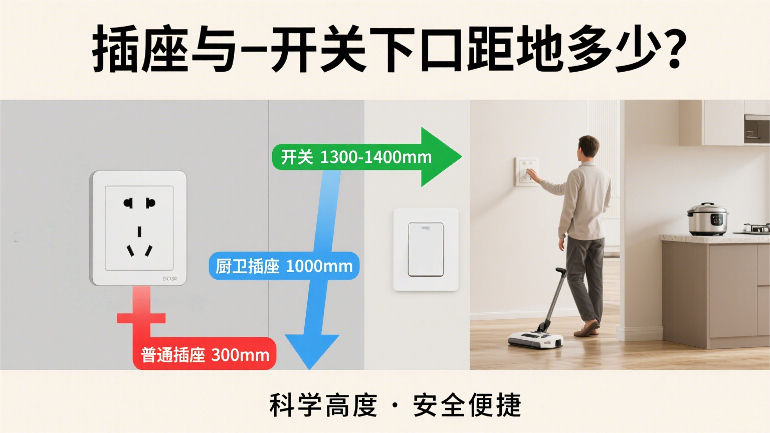 在家庭装修中,插座和开关的安装高度直接影响使用便利性与安全性。不同场景的插座、开关,其下口距地距离有明确规范,合理设置能提升生活体验。