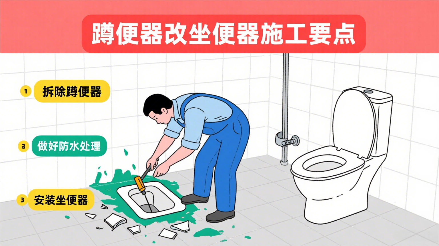 在家庭装修或旧房改造中,很多人会考虑将蹲便器改成坐便器,以提升使用的舒适度,尤其是对于老人、小孩或行动不便的人群来说,坐便器更为友好。但不少人会担心改造的可行性,下面通过问答形式详细解析。