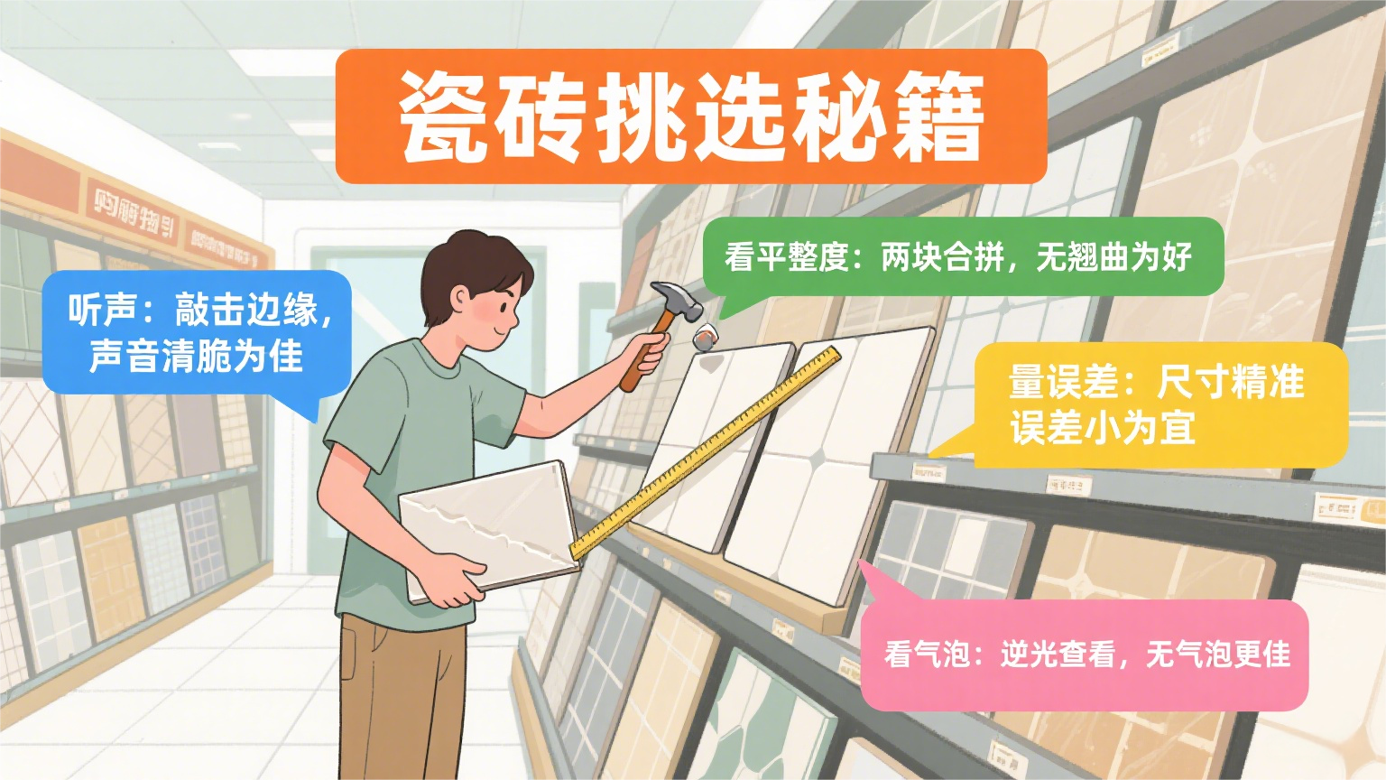 瓷砖是装修中常用的材料,其质量好坏直接影响装修效果和使用寿命。很多人在挑选瓷砖时不知道从何入手,其实掌握一些实用方法就能选到合适的产品。下面通过问答形式详细解析。