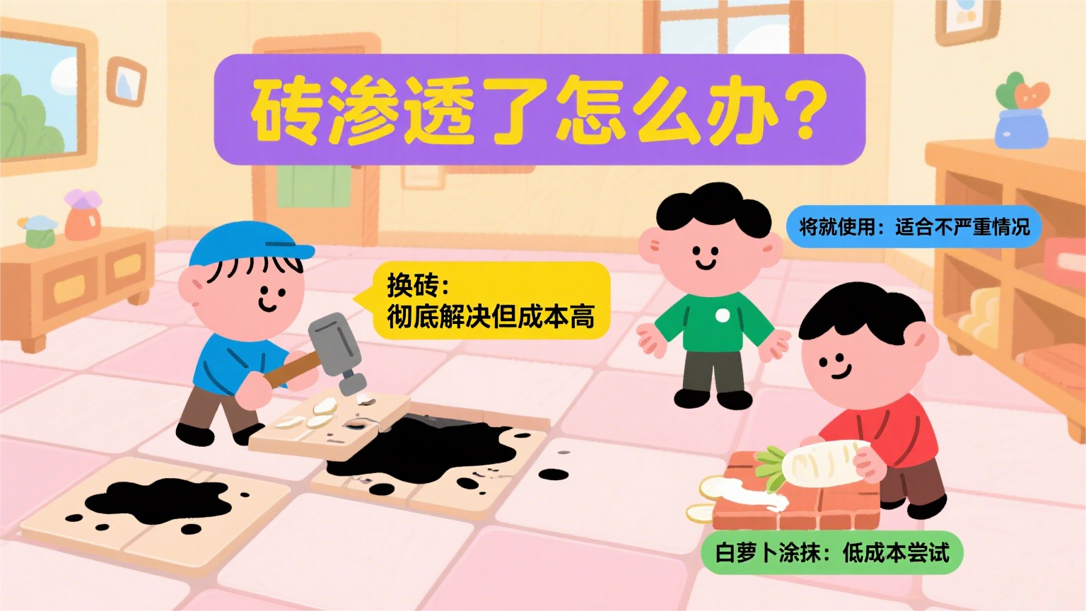 在装修中,瓷砖或地砖使用一段时间后,可能会出现渗透问题,比如污渍渗入砖面难以清理,影响美观。很多业主遇到这种情况会不知如何处理,下面通过问答形式,为你介绍砖渗透的解决方法。