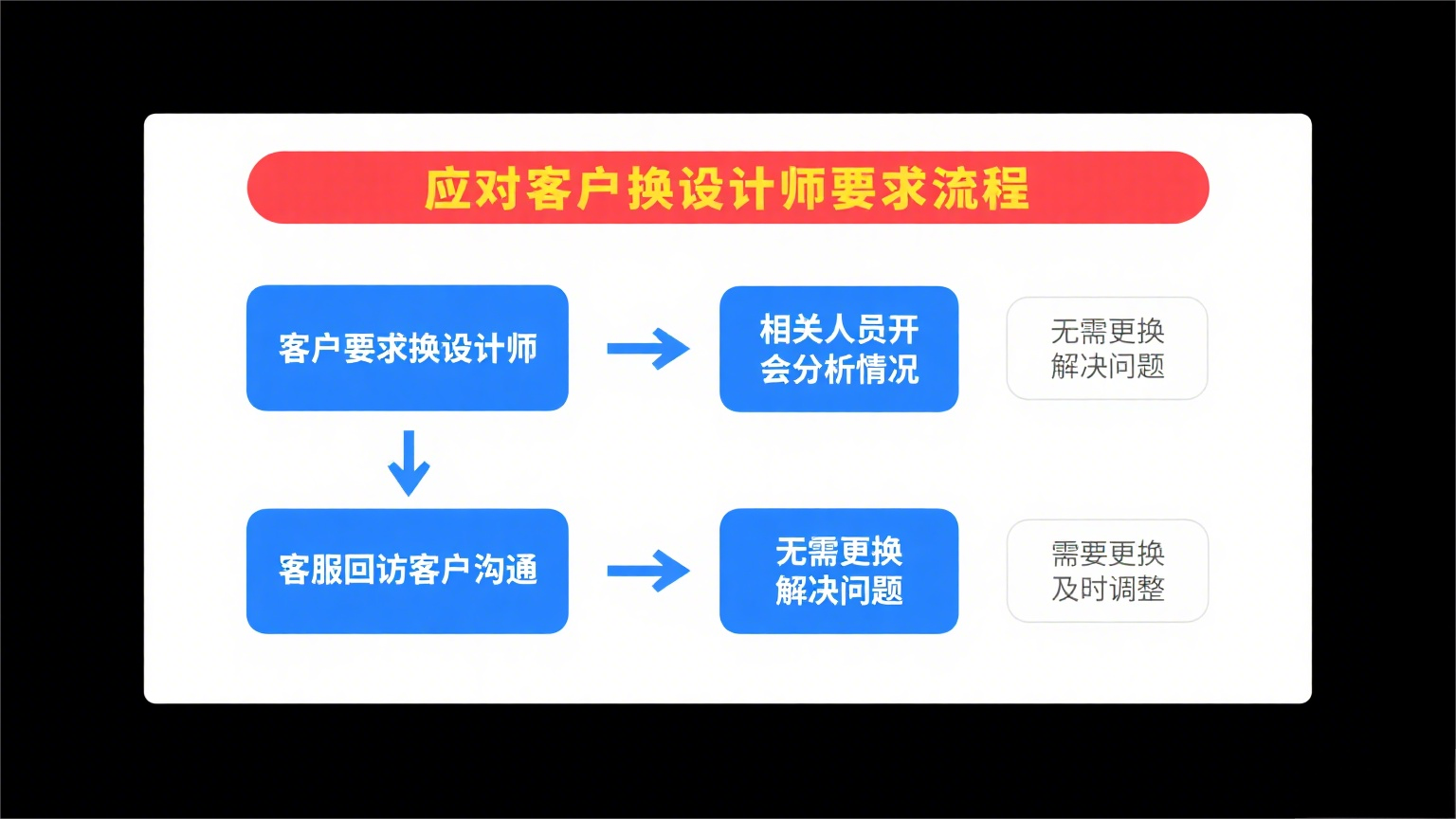 在装修服务过程中,有时会遇到客户要求更换设计师,但又没有具体说明不满意之处的情况。这让装修公司既困惑又棘手,处理不当可能影响客户体验甚至导致合作终止。下面通过问答形式,看看该如何妥善处理。