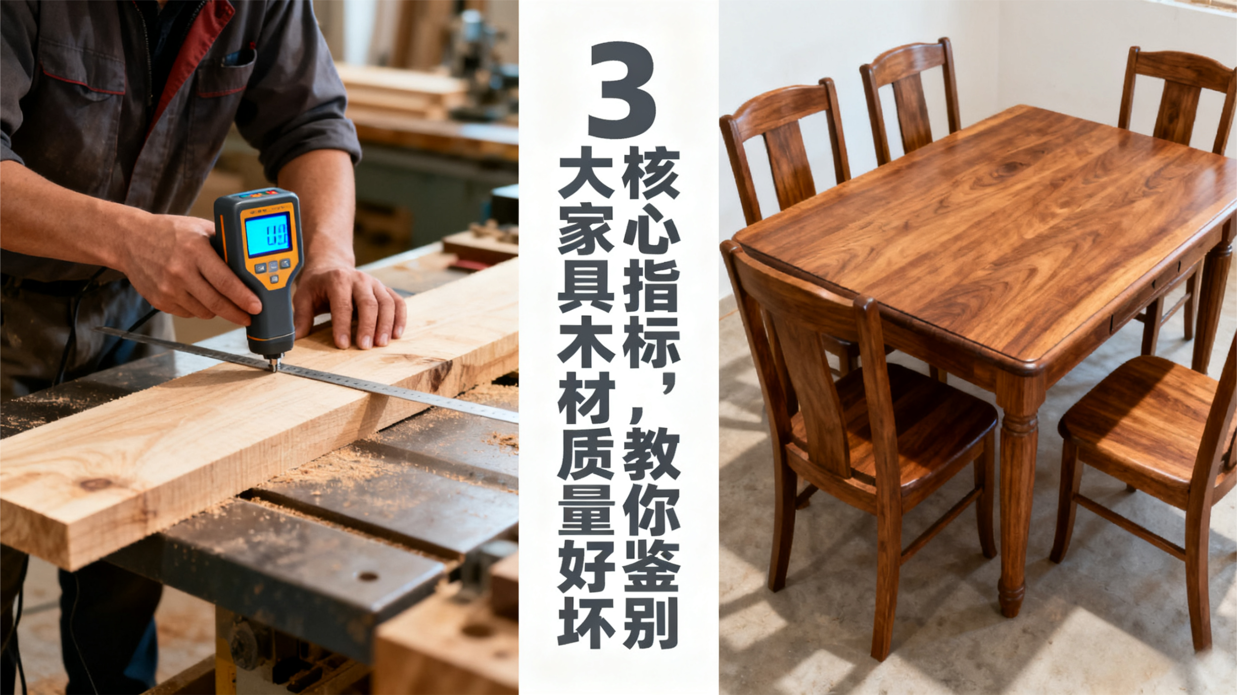 鉴别家具木材质量看三大指标:含水率需适配地域(如华东拼接部件≤18%),避免变形开裂;疵病要少且不影响关键部位,优质木材允许少量小瑕疵;木质需硬软适中、易加工,且结构细密、纹理美观。按此鉴别,能选到稳定耐用的好木材。