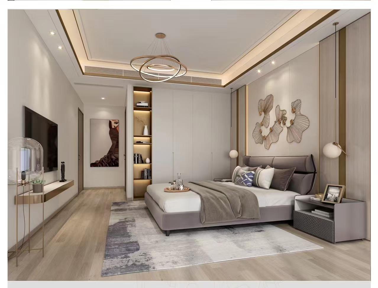 收纳系统:定制整墙柜、隐藏式收纳,在满足大宅收纳需求的同时,保持空间视觉简洁,践行现代轻奢 “藏繁于简” 的设计智慧。