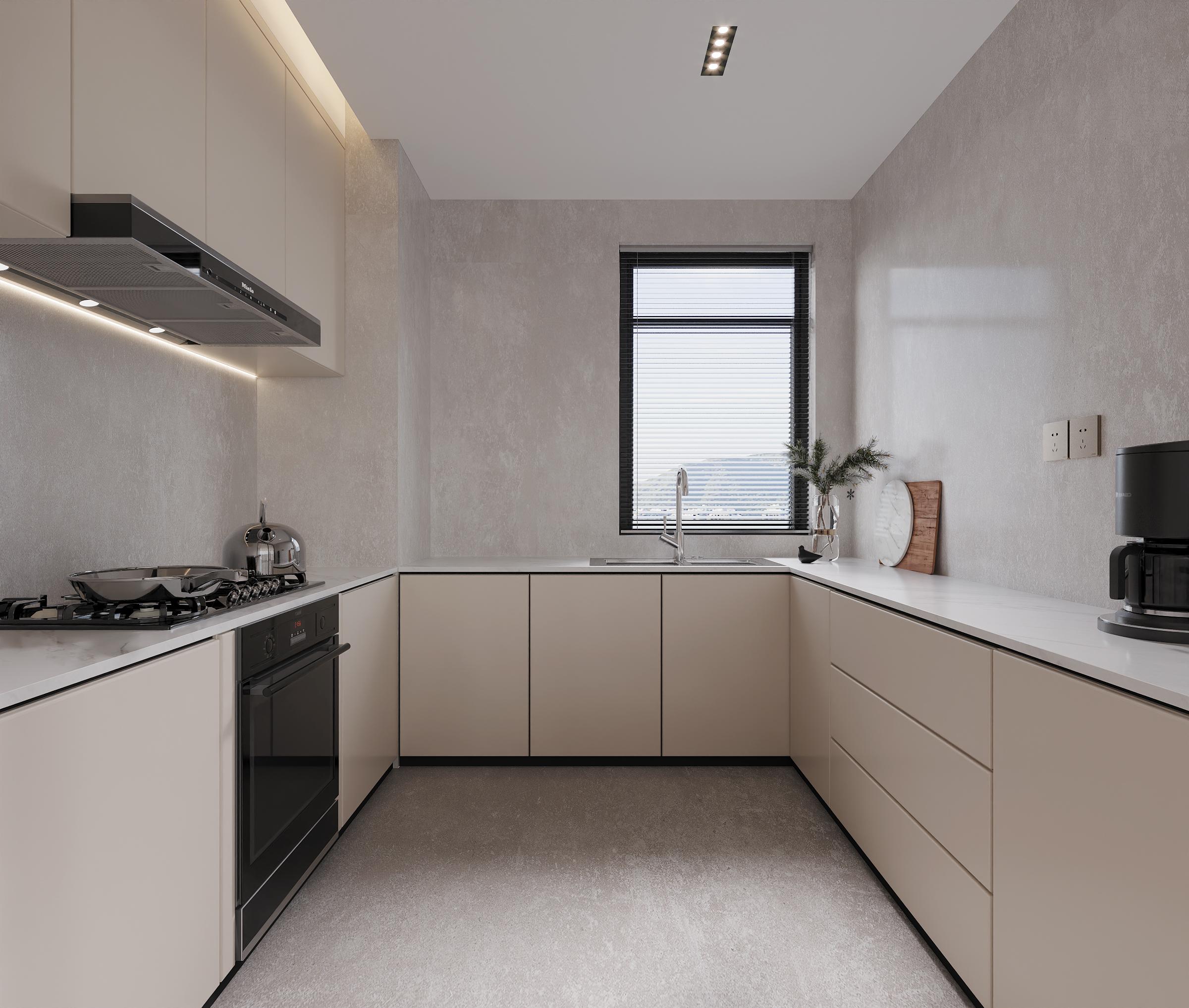 材质运用:微水泥、肤感板材、金属线条等低饱和材质组合,借细腻质感传递极简高级感,如微水泥墙面的温润、金属收边的精致;