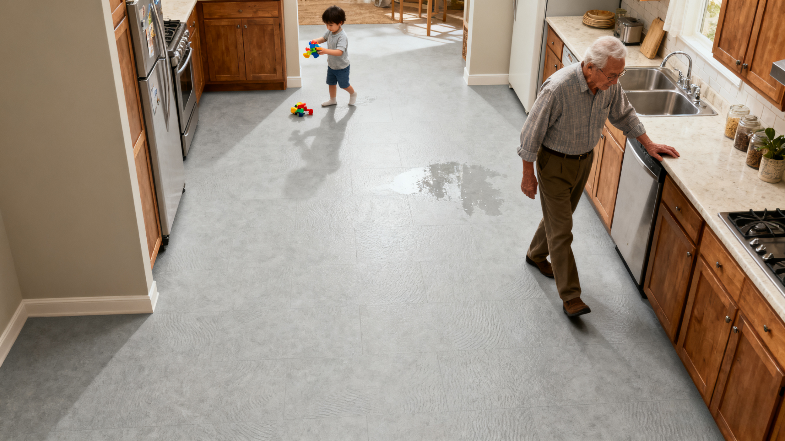 厨卫空间的选择要把 “安全” 放在第一位。如果家里有老人或小孩,地面一定要选防滑地砖。厨卫用水多,地面容易潮湿,防滑地砖强度高、防滑性好,能减少滑倒风险,从细节处守护家人安全,毕竟家居的本质是服务于人。