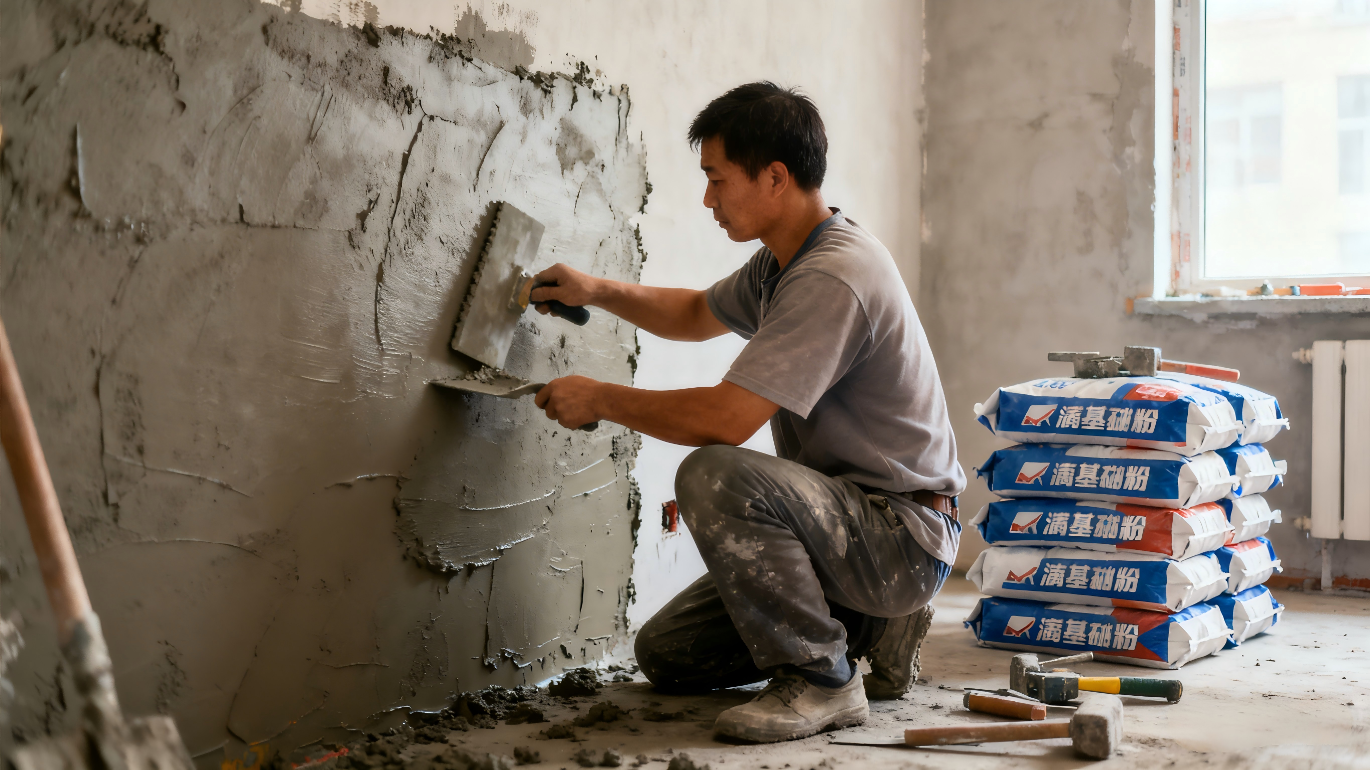 腻子的质量直接影响墙面抗裂能力,应优先选用优质水泥基干粉内墙腻子。这类腻子能为墙面与涂料提供强双向粘结力,防止涂料起皮剥落;其含有的保水成分可减缓水分蒸发,干燥后仍保持柔韧性,硬化后还具备极强抗拉强度,能抵御冷缩产生的拉力,有效避免开裂。