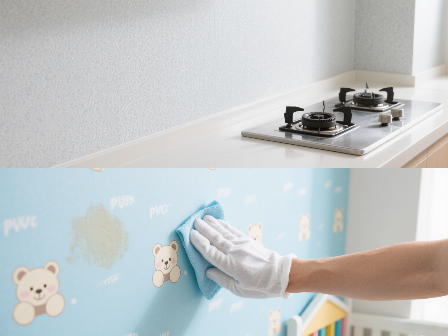 它的优点特别贴合家庭需求:花色品种多,从卡通到简约能覆盖所有风格;适用面广,客厅、卧室、儿童房都能贴;透气性好,接缝不易开裂;表层有腊面,脏了用湿布一擦就干净,孩子画墙也不怕。性价比高、好维护,成了很多家庭的首选,尤其适合预算有限、追求省心的年轻住户。