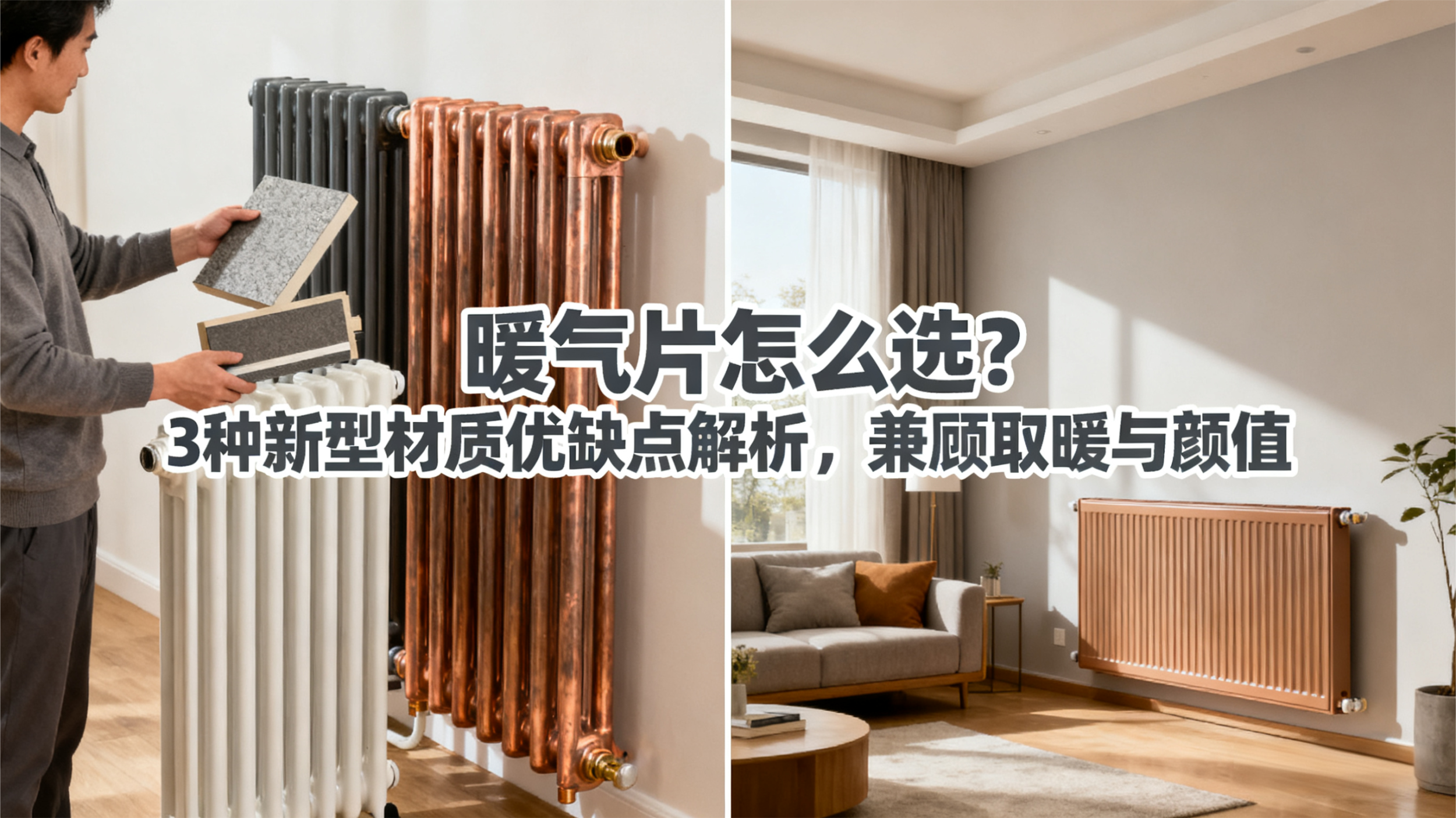 选购暖气片可看 3 种新型材质:钢制的耐用抗造、颜值高;铝制的散热快节能,需选内壁带防腐层的;铜制的小巧省空间,要按面积选规格。它们均比传统铸铁款美观,能兼顾取暖与装饰,按需挑选即可。