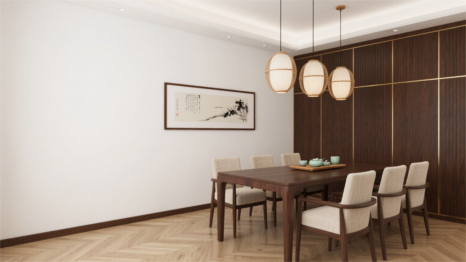 餐厅装修材料选择需注重实用与健康。地面首选瓷砖、复合木地板,注意环保与放射性;忌用地毯。墙面多用偏暖色调内墙乳胶漆,可选一面墙用特殊材料做亮点。顶面常用石膏板吊顶刷白漆,助力采光。