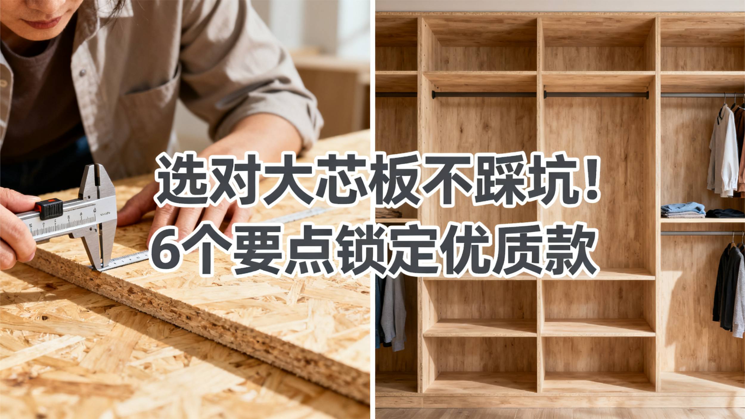 大芯板(细木工板)是常用家具板材,选优质款需看 6 点:基础标准(单板厚≥3mm、芯材同树种等);外观(木皮层厚、平整无弯);内芯(拼合紧密、无脱胶);气味(侧面无刺激味);标识(有正规鉴定书和板身号印)。按此挑选,能选到耐用环保的大芯板。