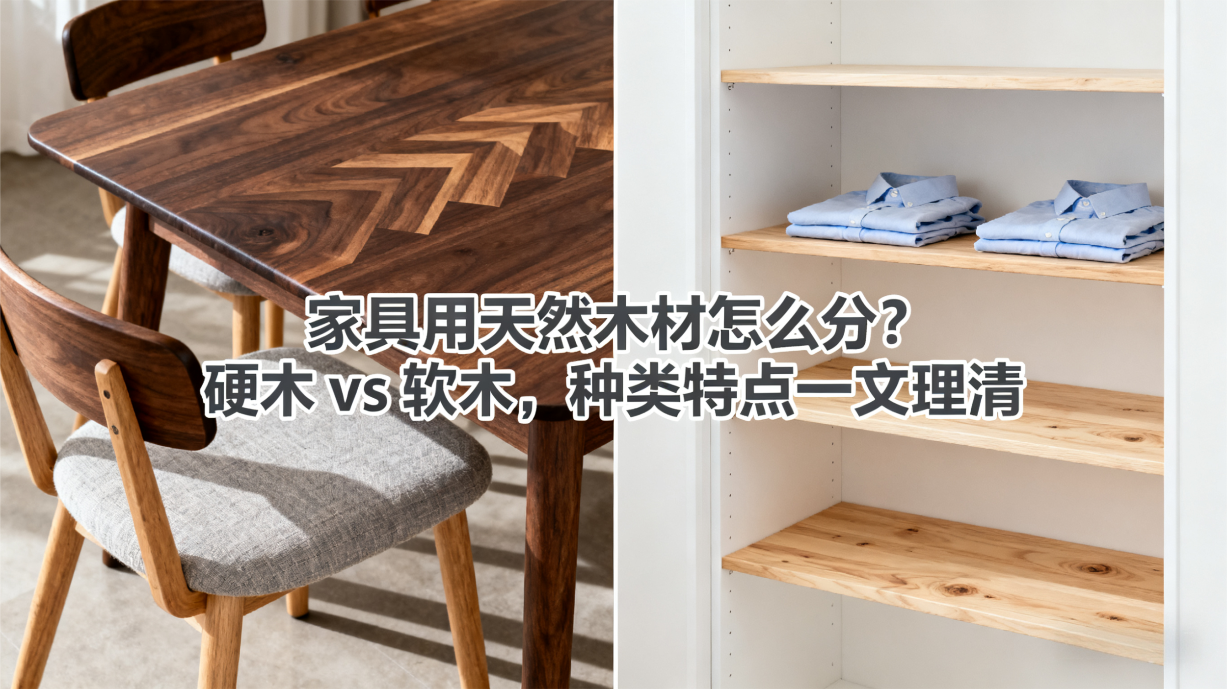 天然家具木材分硬木和软木。硬木取自阔叶树,材质硬重、纹理美,是家具框架与面饰主力,如榆木、橡木等,部分易加工、部分需防开裂;软木取自针叶树,质地软易加工、变形少,做辅助用料,如红松、冷杉等,带节子需处理。两类木材用途适配不同,按需选择即可。