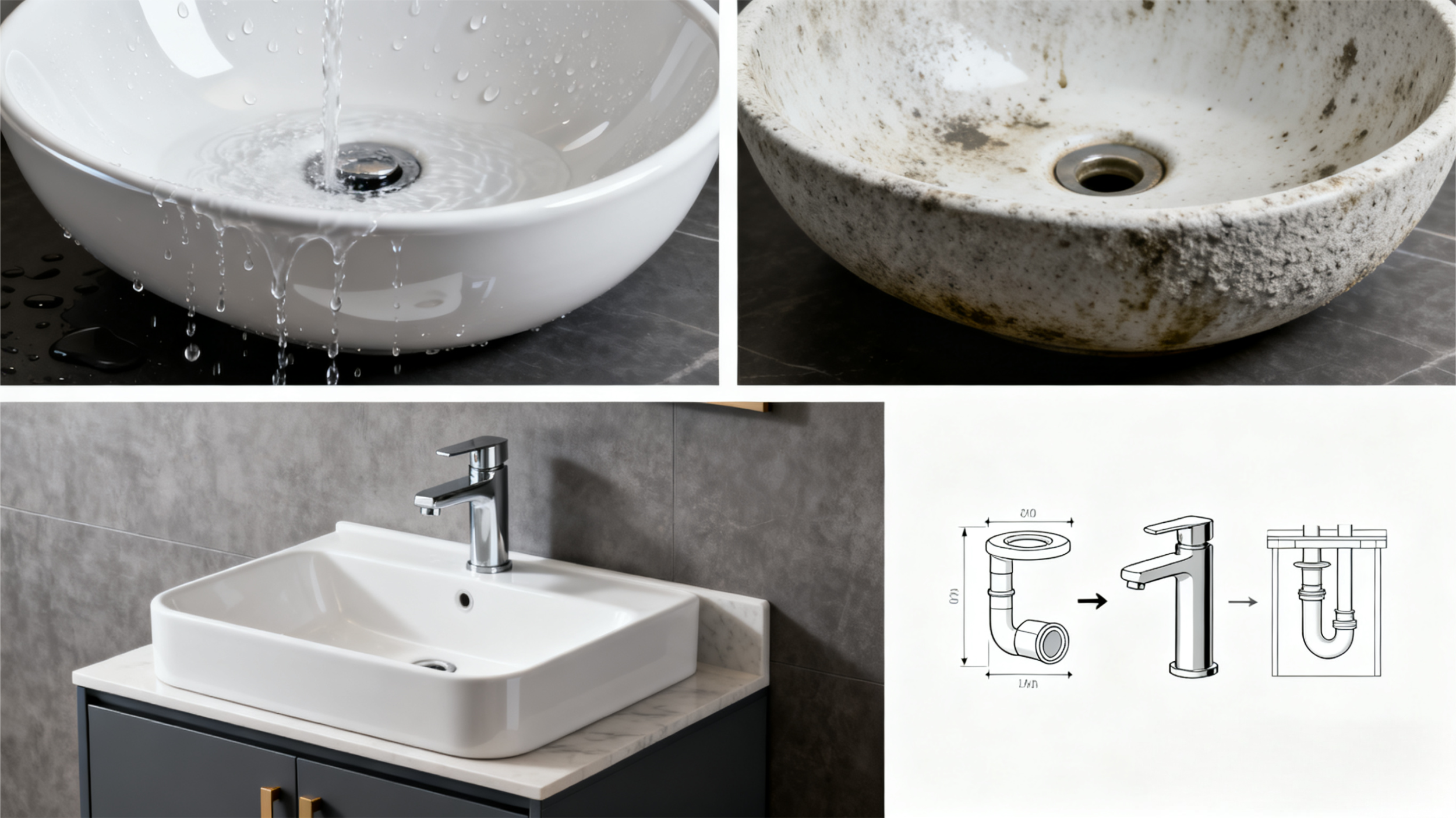 台下盆外观简洁,能让台面更整洁,但安装步骤复杂,后续维修难度稍高;