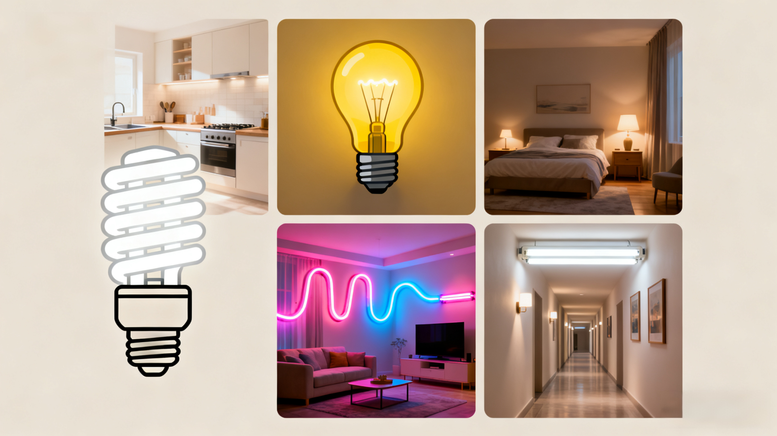 白炽灯:光线柔和温暖,不刺眼,能营造温馨氛围,适配卧室、书房,尤其适合睡前阅读或工作学习,避免强光影响视力。