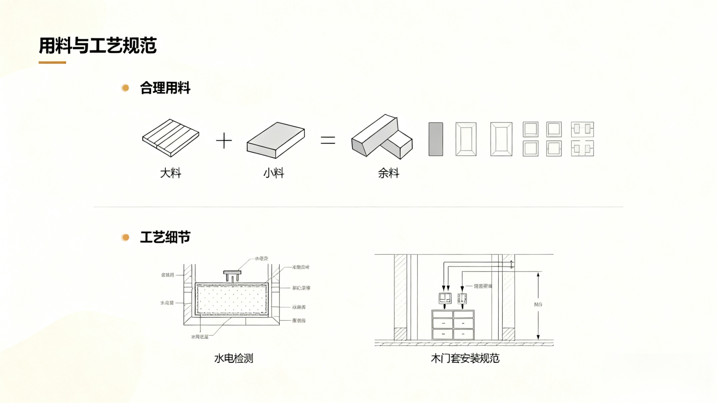遵循 “大料优先、小料补充、余料利用” 的原则开料,比如包下水管用水泥红砖而非优质大芯板,隔墙柜背板用石膏板替代大芯板,在保证质量的前提下控制成本。