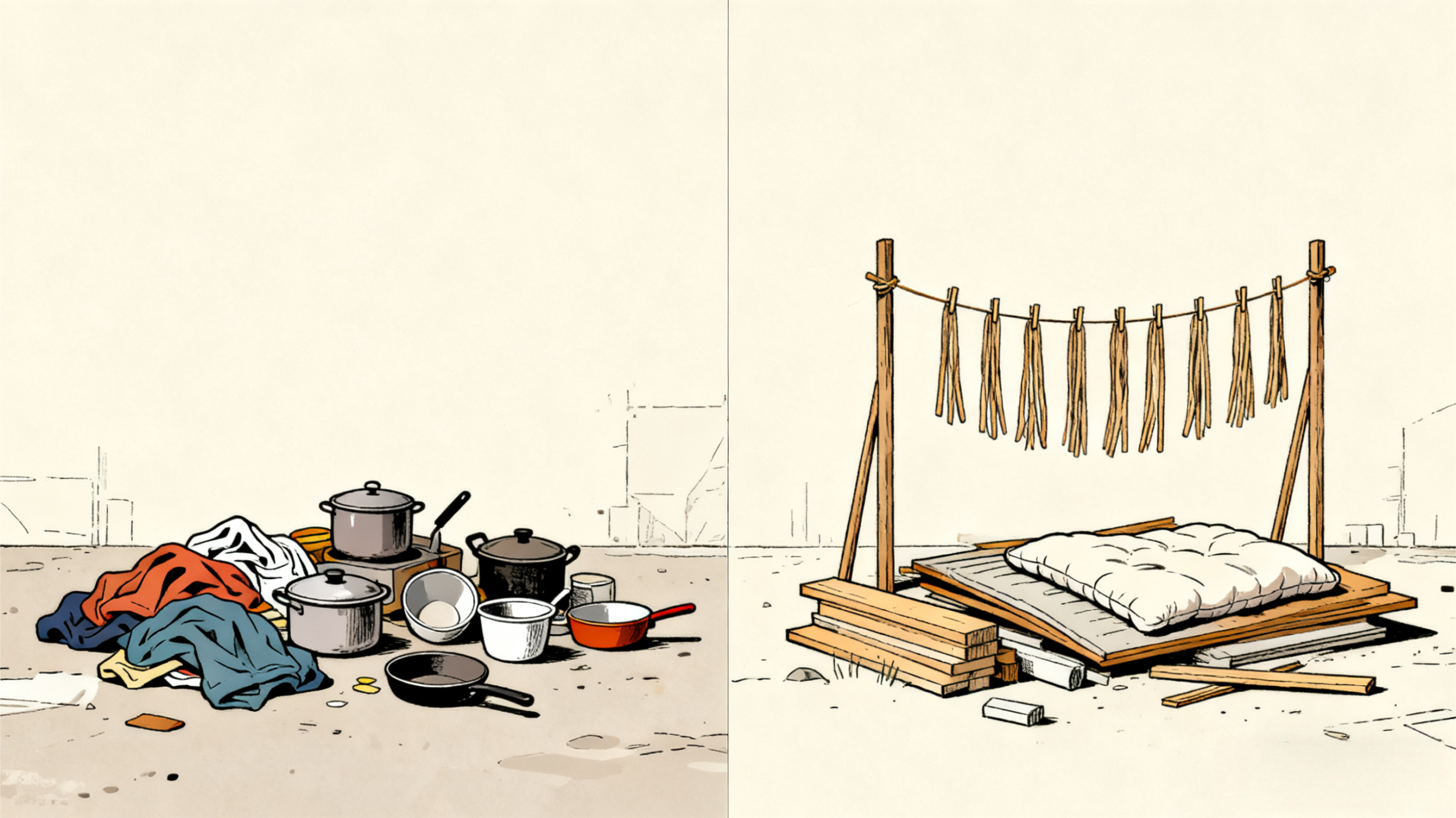 工人没有正规床铺,常利用工地材料充当床垫,还会用木线、电线晾晒衣物被褥,直接导致材料损耗,让业主的新房未入住先受损,心理体验极差。