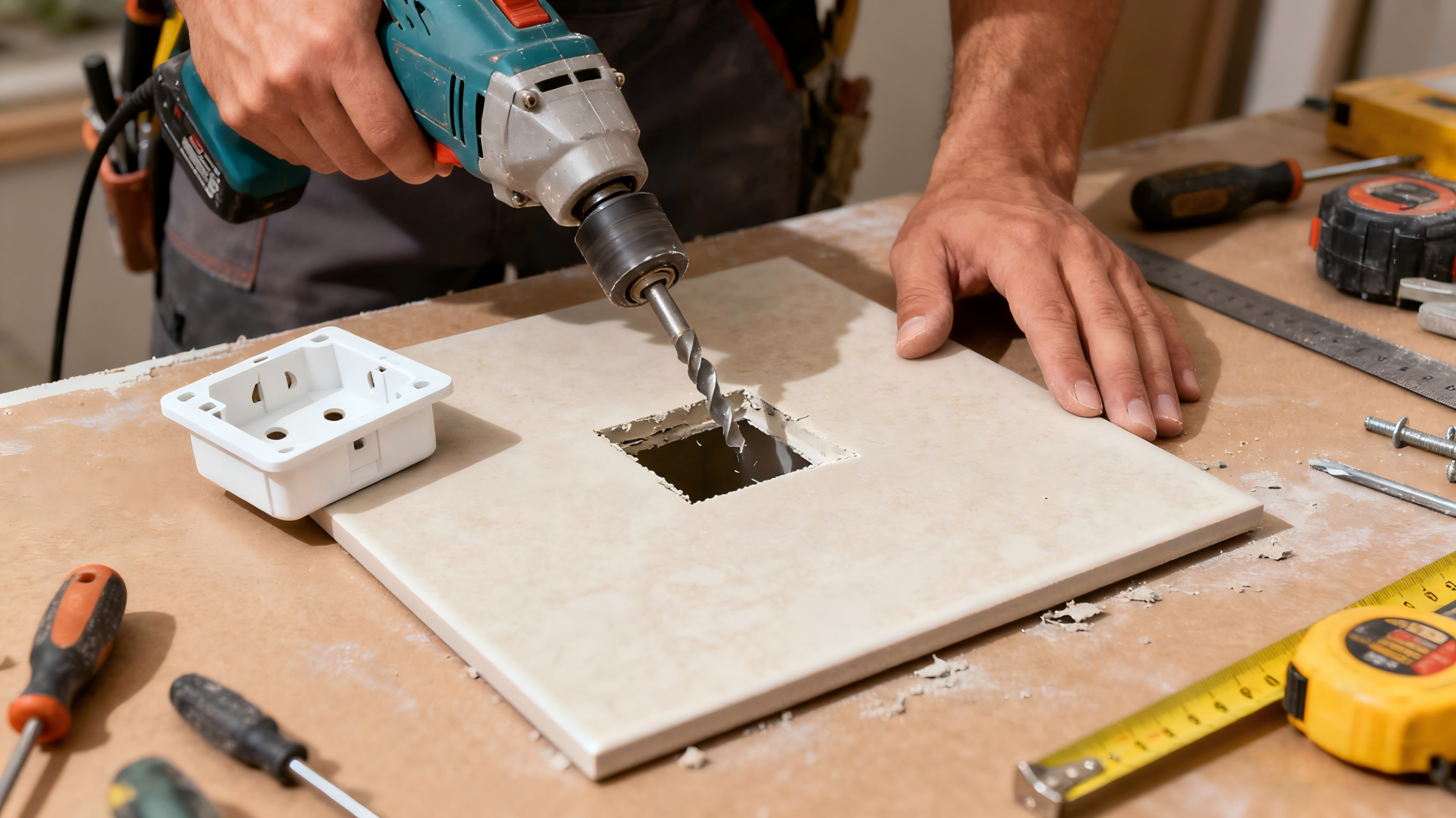 插座底盒开孔:边框尺寸比底盒大不超过 2mm,形状需为方形(严禁开圆孔),确保底盒与开孔精准契合,避免缝隙过大;安装后底盒边缘需尽量与瓷砖表面平齐,后续安装开关、插座时无需额外适配长螺丝,保证安装后表面平整。