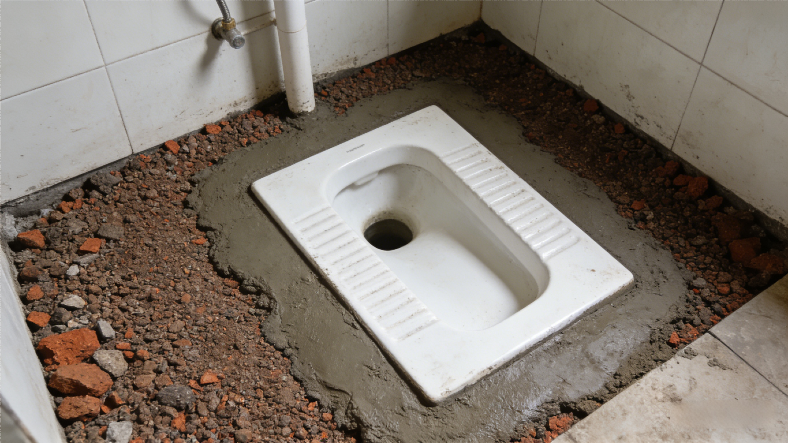 蹲便器采用开孔安装时,开孔底层需用炉渣或沙子填充,表层再抹上较薄的水泥砂浆层。这种填充方式既能固定蹲便器,又能为今后检修预留空间,避免检修时需敲坏蹲便器才能施工,减少后期维修成本与麻烦。