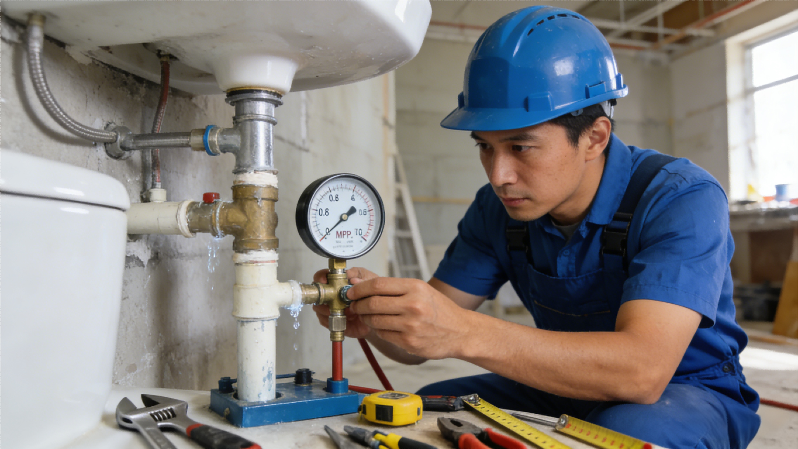 洁具的水管接头必须连接正确且牢固,这是杜绝漏水的关键。连接完成后,需用试压泵进行试压检测,保持 0.6MPa 的压力并持续观察 24 小时,确认无渗水现象后,才能进入后续安装步骤,防止因接头松动或密封不严导致后期漏水,破坏卫生间装修。