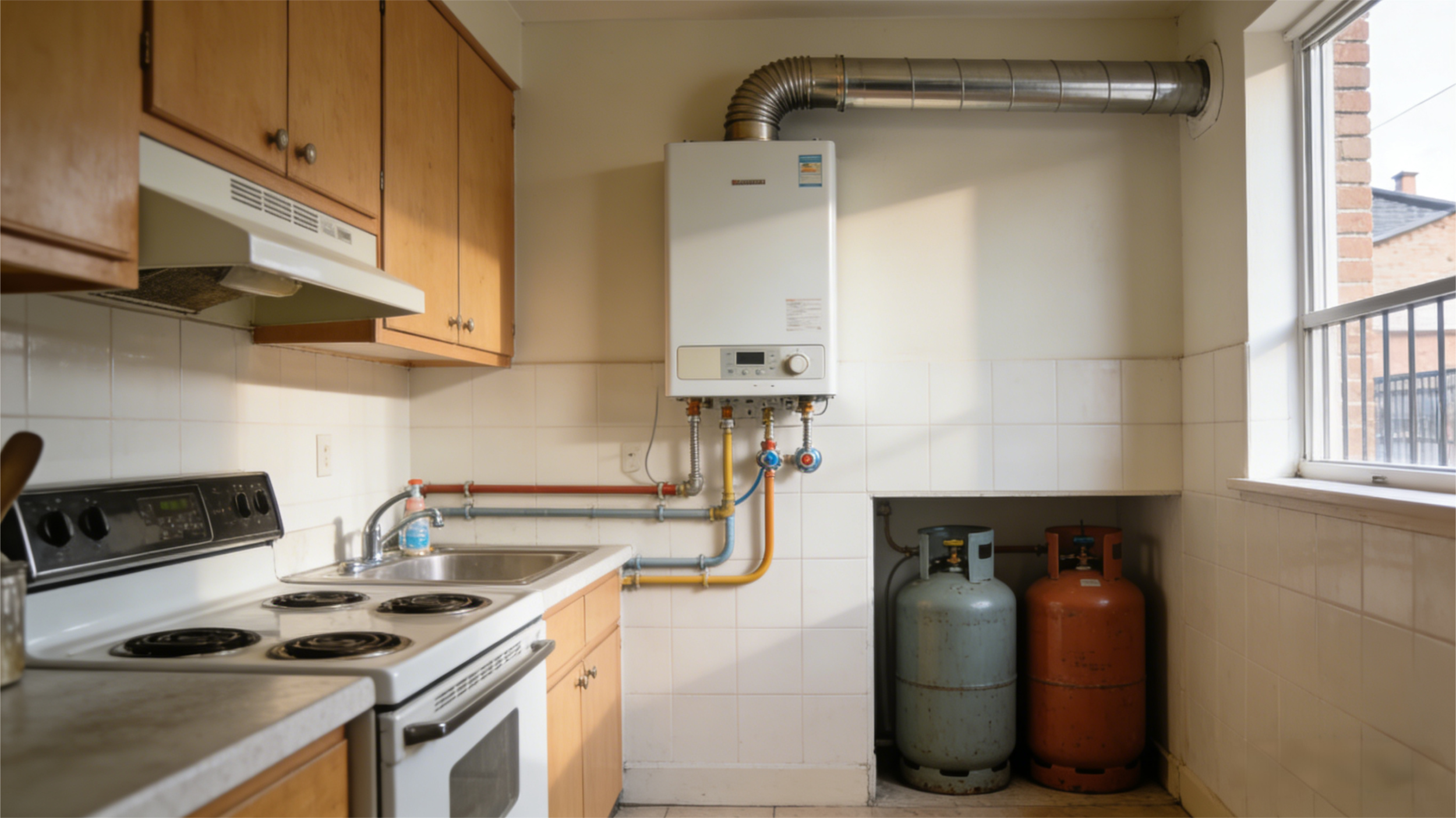 安装时要充分考量热水器与卫生间整体空间的协调性,若使用液化气瓶供气,需提前规划好气瓶的摆放位置,既要保证气瓶通风散热、远离火源,又要兼顾整体空间的美观度,避免出现设备或气瓶突兀摆放、影响家居颜值的情况。