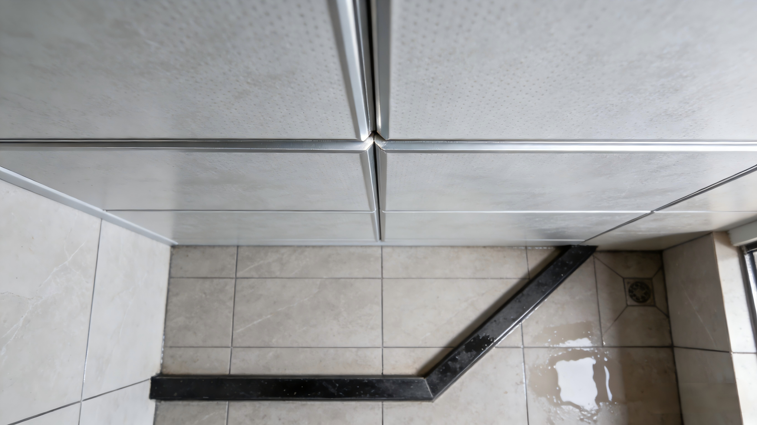 顶面吊顶验收侧重牢固性与美观度。吊顶龙骨安装牢固无松动,造型贴合设计与使用需求。铝扣板拼接缝隙均匀,表面平整、颜色一致,灯具安装四周密封严密。墙四周收口线采用45º拼角,墙角衔接严实,无明显缝隙,兼顾实用性与整体美感。