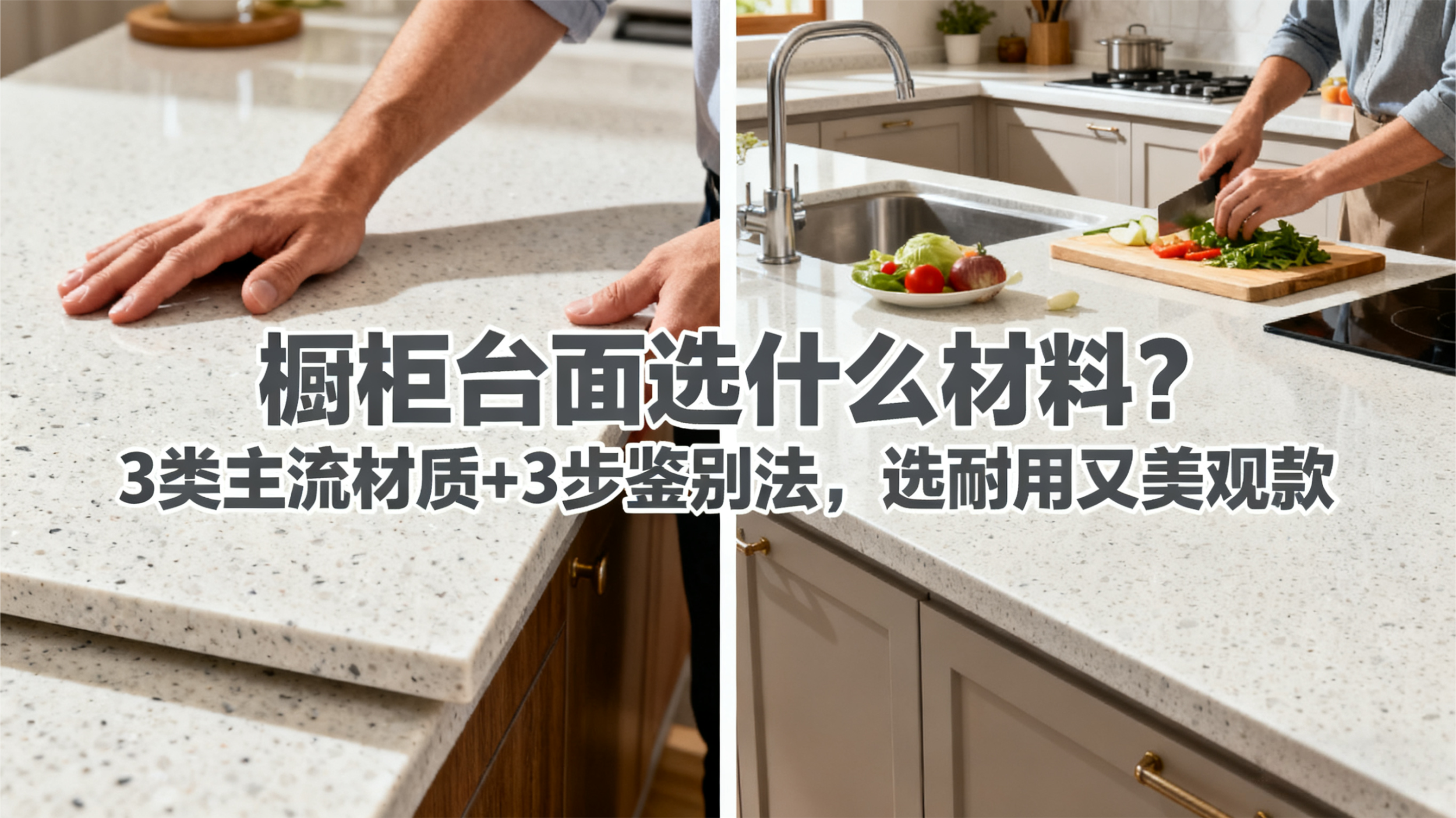 橱柜台面选什么材料?3 类主流材质 + 3 步鉴别法,选耐用又美观款