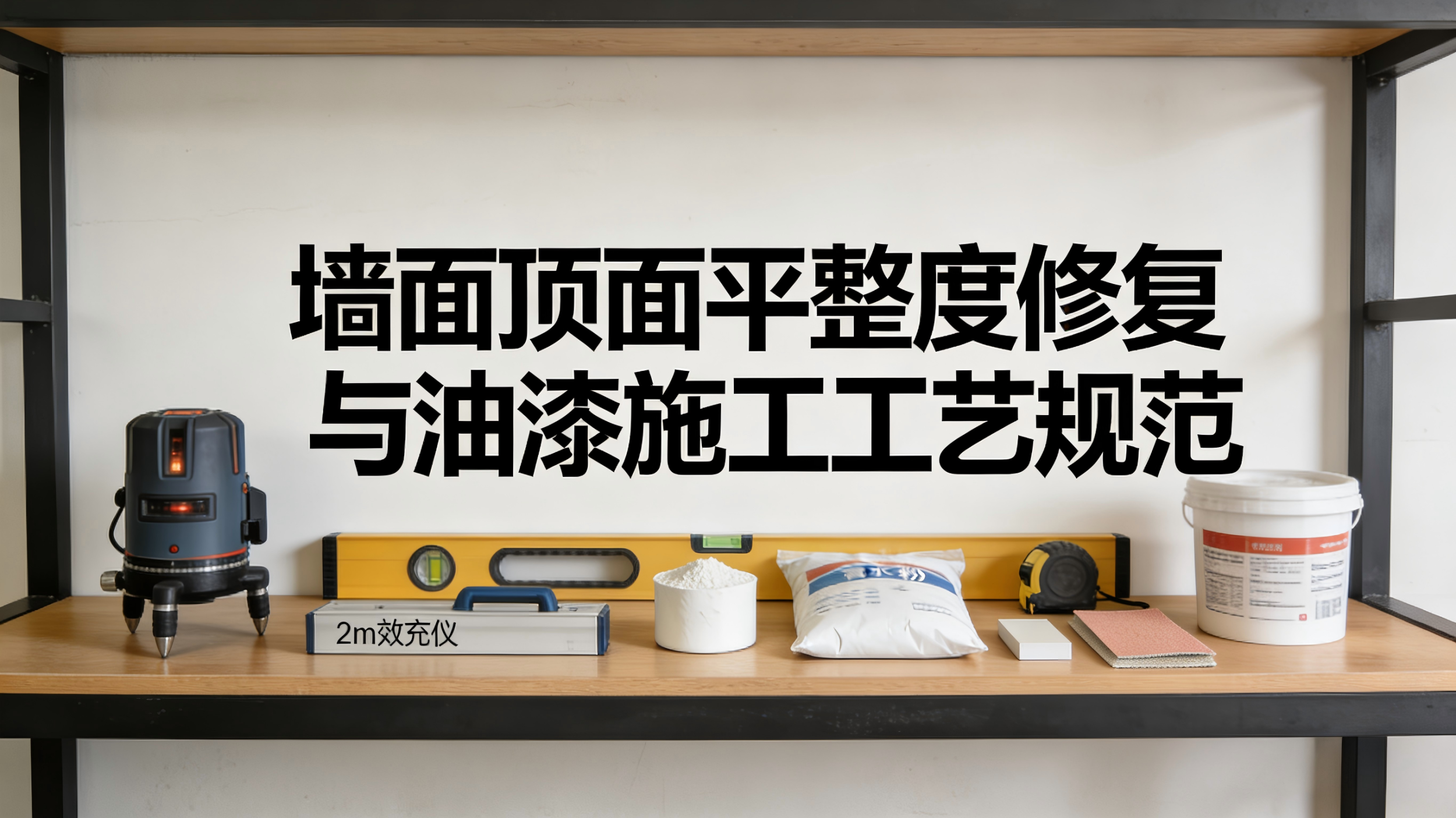 本文系统阐述墙面顶面平整度修复技术,包括激光投线定位、分层填补(白水泥:石膏粉=3:1)、网格布加固等核心工艺。通过2m靠尺实现±2mm/2m精度控制,详细规定基层验收标准(含水率≤10%、附着力≥1.0MPa)及油漆施工条件。配套大面积落差处理、裂缝预防方案,适用于各类墙面顶面油漆前的基层处理。