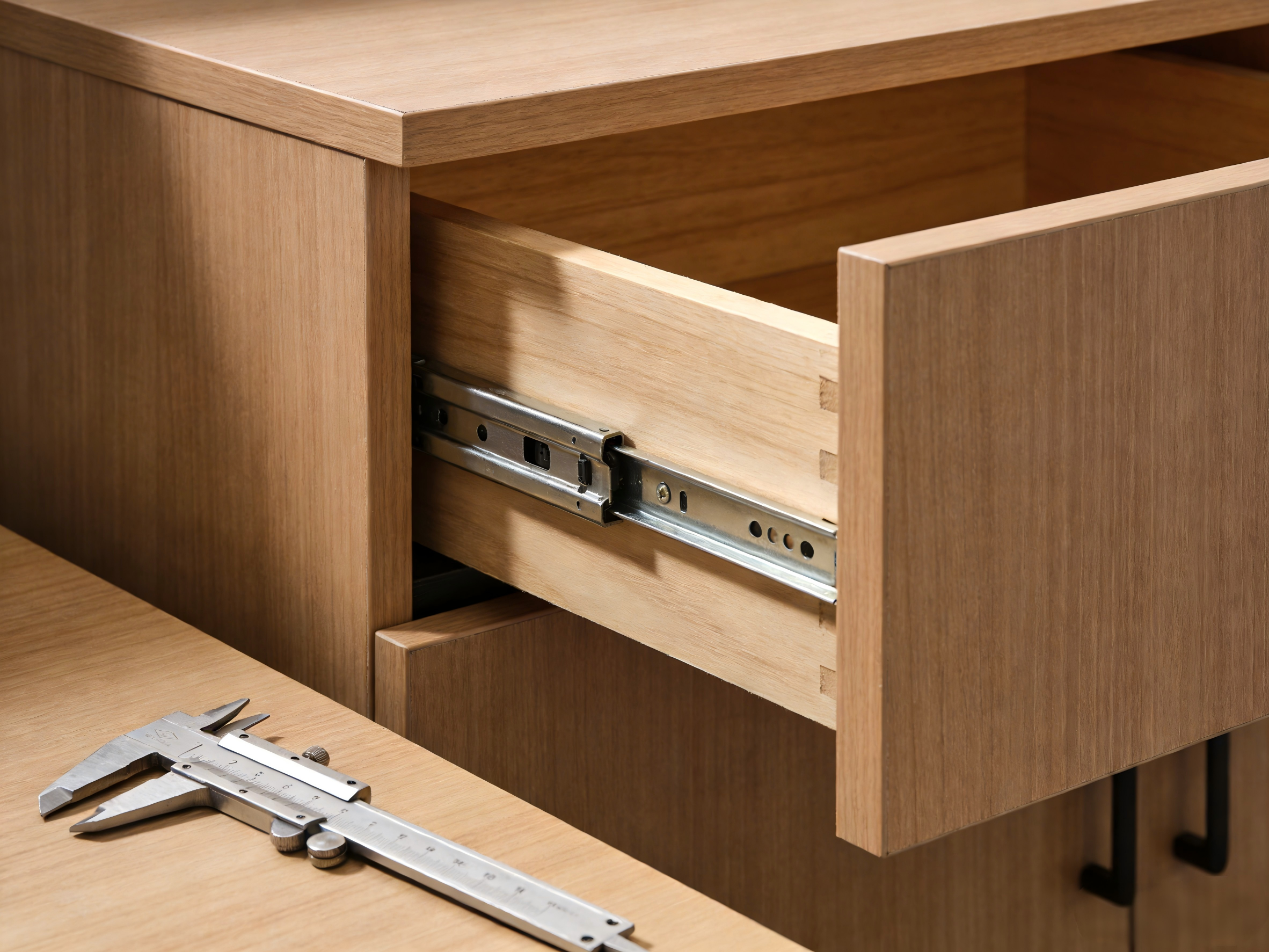 针对抽屉导轨、挂裤架、推拉门滑轨等五金件,反复拉动或滑动测试,确认运行顺畅无卡顿,连接件牢固无松动。五金配件的品质直接影响家具的使用便捷性,需重点核查。