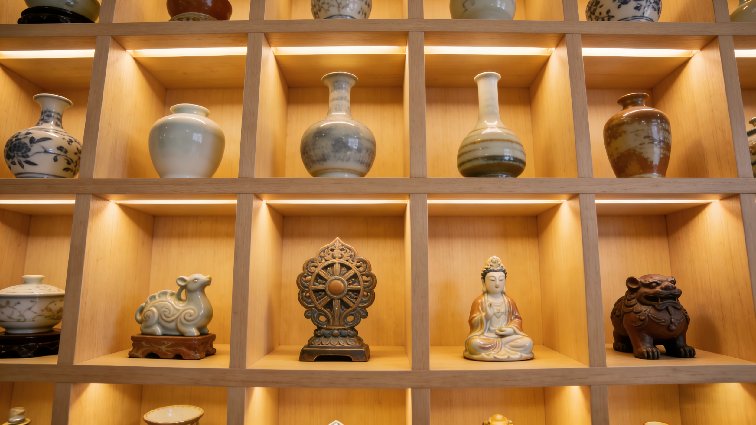 色彩上,工艺品色调不宜过于突兀,应在整体空间色系内做点缀,搭配灯光可增强质感与层次。配置工艺品还需遵循五大原则:少而精,拒绝杂乱;尺寸比例协调,避免头重脚轻;注重艺术效果,打破空间单调感;注意材质对比,保护器物;色彩与环境和谐,不盲目搭配。